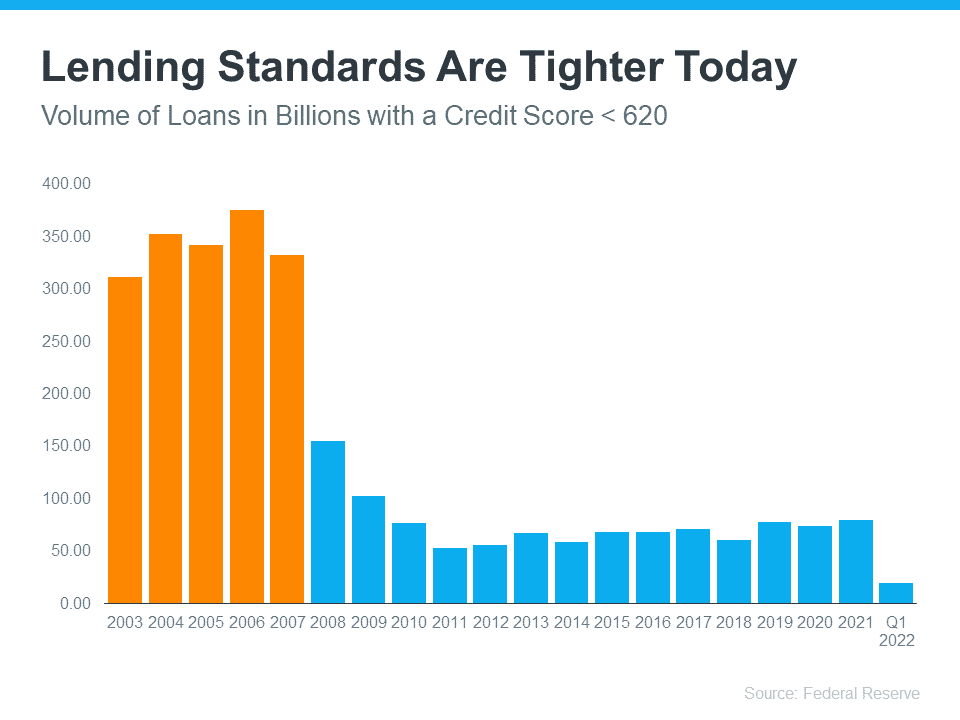 This graph helps show one element of why mortgage standards are nothing like they were the last time. Purchasers who acquired a mortgage over the last decade are much more qualified than they were in the years leading up to the crash.